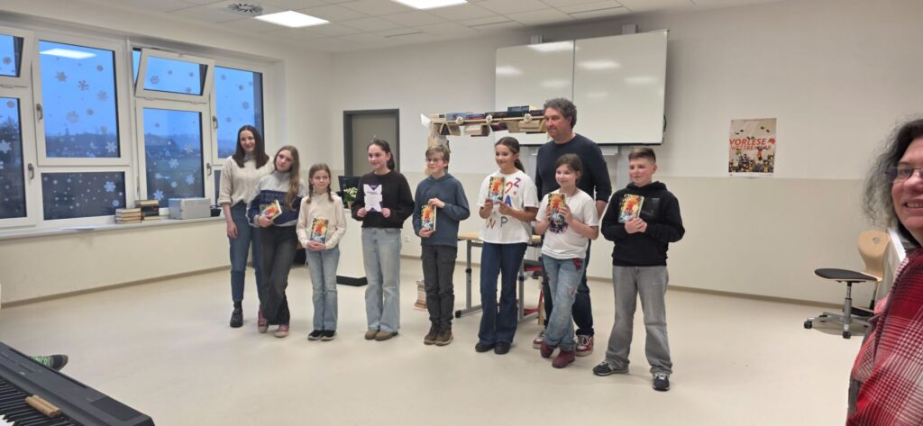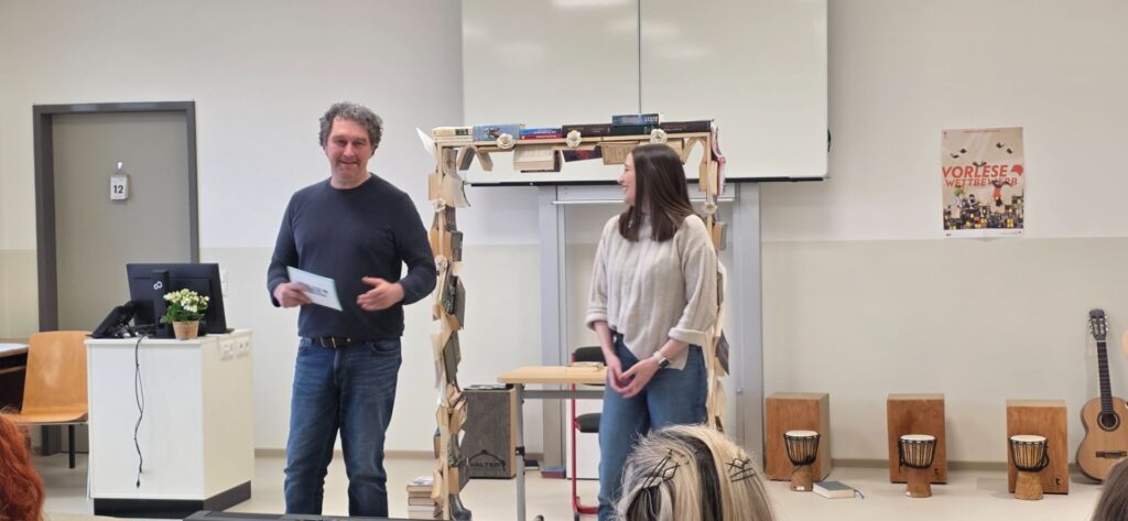 Endlich war es soweit! Die Schülerinnen und Schüler der 6. Klassen aller Schularten des Landkreises Hof durften zeigen, wie gut sie lesen konnten. Da der Wettbewerb in diesem Jahr an der Mittelschule in Feilitzsch stattfand, waren die hiesigen 6. Klässler*innen besonders stolz für das Rahmenprogramm verantwortlich zu sein. Sieben Leser*innen des Landkreises traten gegeneinander an – zunächst musste ein von ihnen bekannter Text gelesen werden und im Anschluss daran ein Fremdtext. Nach zwei Stunden stand die Entscheidung fest: Siegerin des Kreisentscheids war Malina Piwonski aus Münchberg. Die Gymnasiastin überzeugte durch ihre Lesekompetenz und Intonation. Umrahmt war die Veranstaltung durch den Grundschulchor (Fr. Kemnitzer), der das Lesespektakel eröffnete. Die 5. Klässler (Fr. Worasek) beindruckten durch ihren Gardetanz und die Schüler*innen der 6. Klasse (Fr. Hund-Haßfurth) zeigten mit ihrer Cajon-Akrobatik, was alles mit Büchern möglich ist.